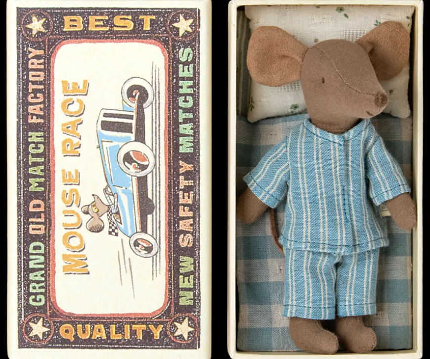 A Classic Maileg Item. This Mouse Is Ready For Hours Of Play And Sleeps Tight In The Matchbox. The Clothes And Bed Linen Come In Unique Prints And Beautiful Colours.